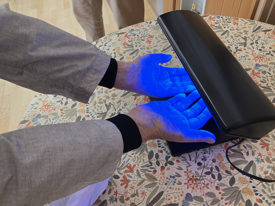 秩父保健所から手洗いチェッカーを借用し、自分の手洗いの癖を知り、日頃の手洗いで注意すべき点を学習してもらいました。