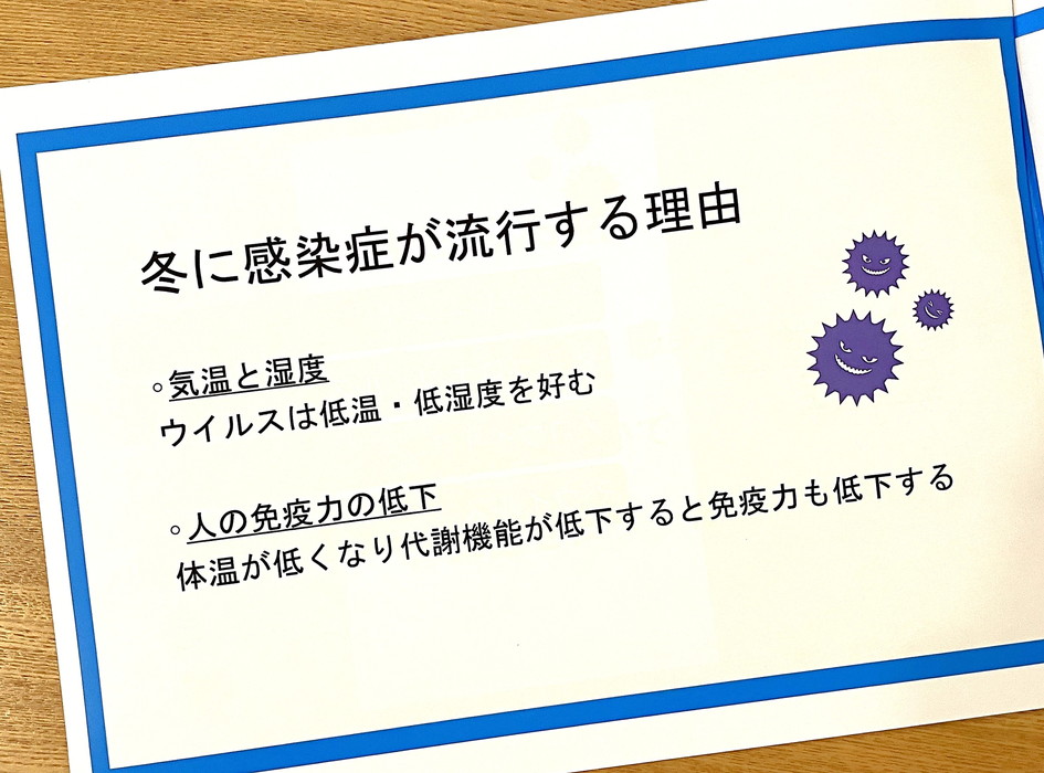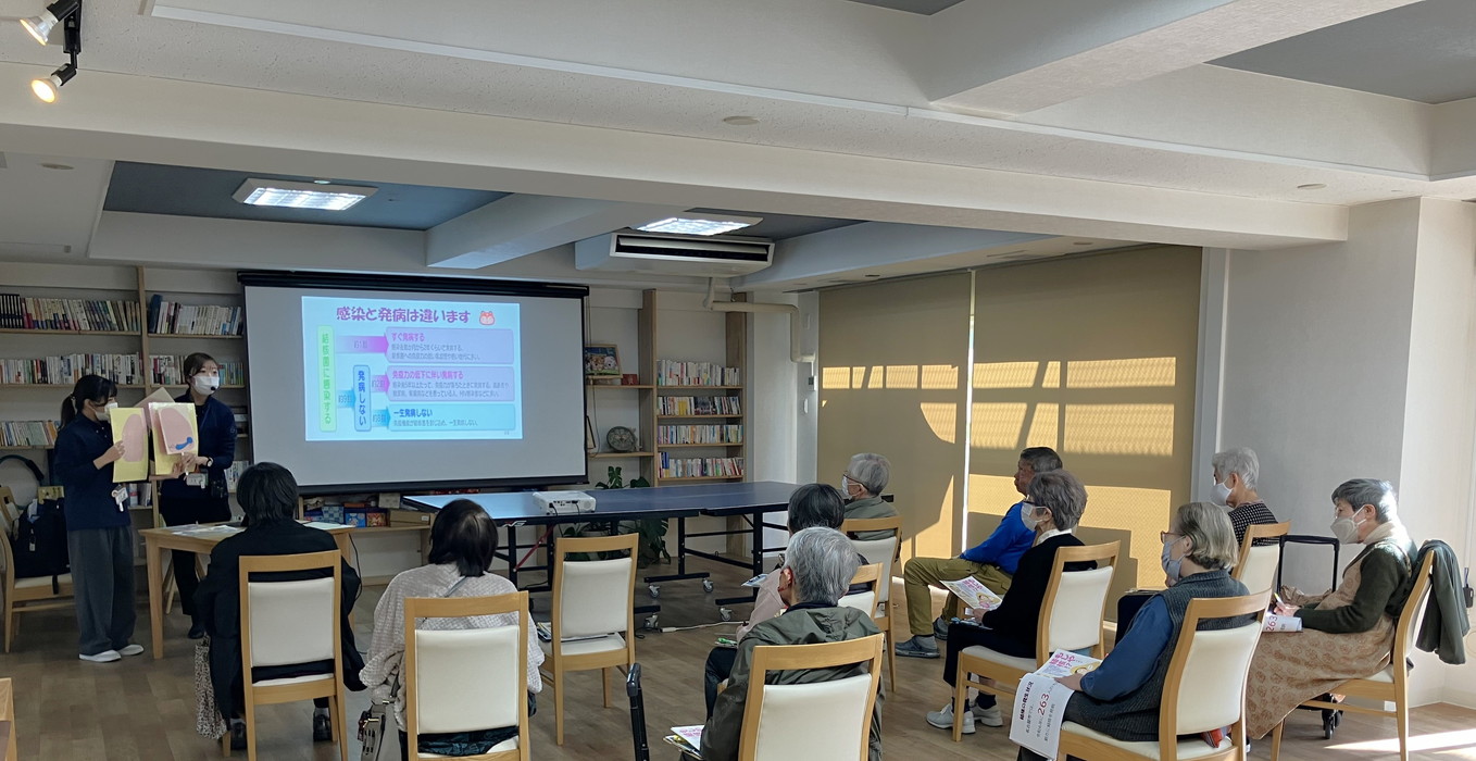 11月21日(金)ゆいま~る神南では、港保健センターから保健師の方にお越しいただき感染症について話を聞く機会を設けました。