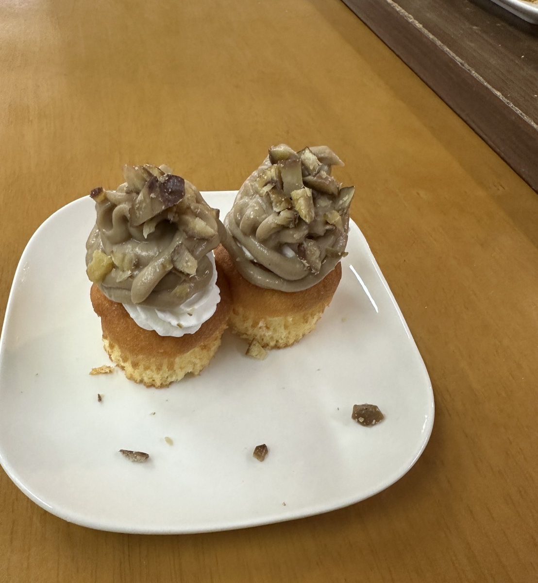 本当は、利用者さん一人一人にモンブランクリームを絞ってもらう予定でしたが