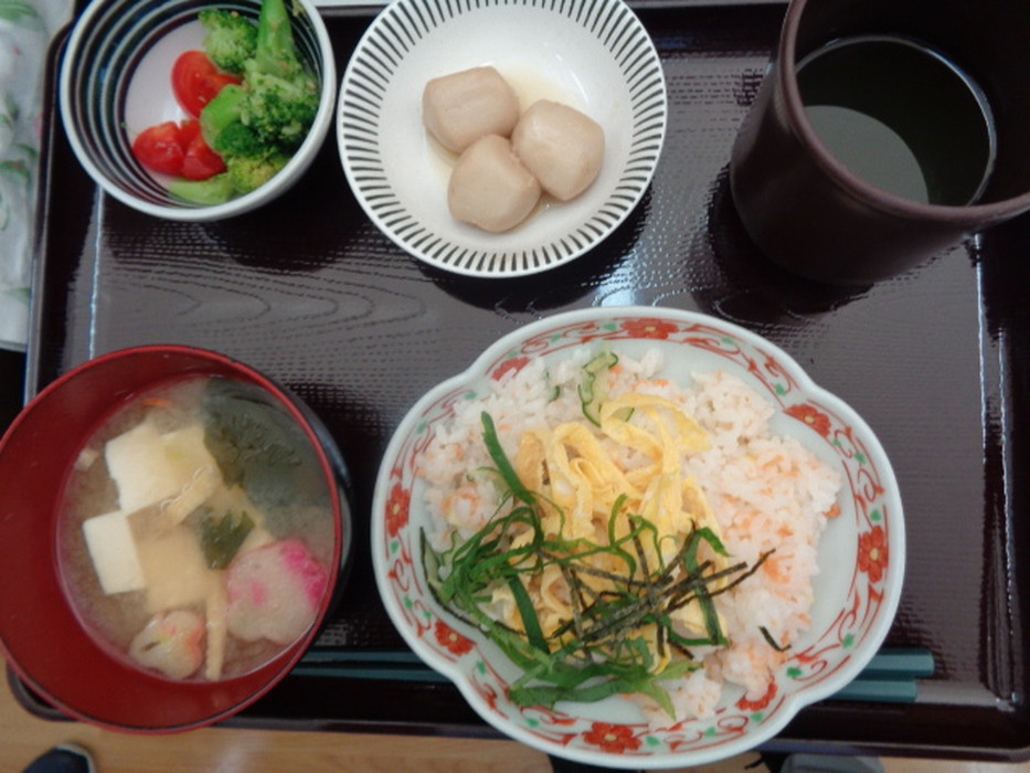 付け合わせには、ブロッコリーの胡麻和え、小イモの煮っころがし
