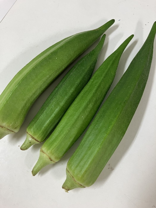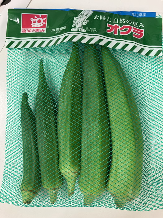 あまりに立派に育ったので、売り物のようにオクラの袋に入れてみたそうです。