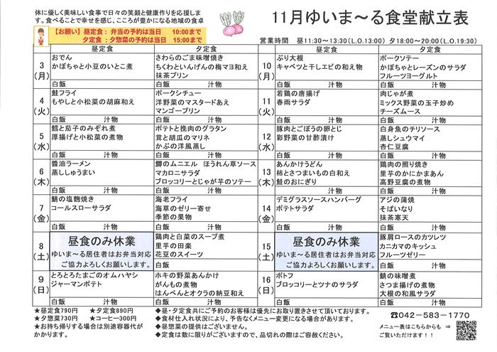 体に優しく美味しい食事で、日々の笑顔と健康作りを応援します! 食べることで幸せを感じ、心が豊かになる地域の食卓ゆいま~る食堂