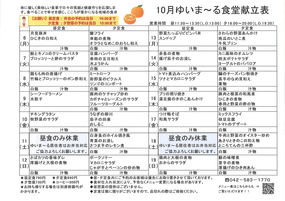 体に優しく美味しい食事で、日々の笑顔と健康作りを応援します! 食べることで幸せを感じ、心が豊かになる地域の食卓ゆいま~る食堂