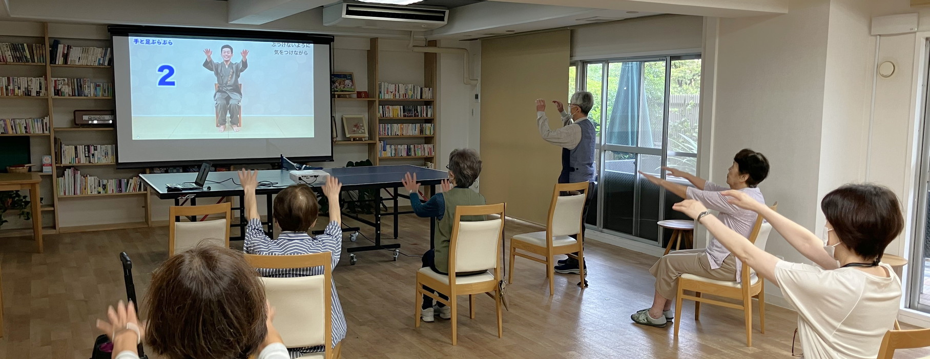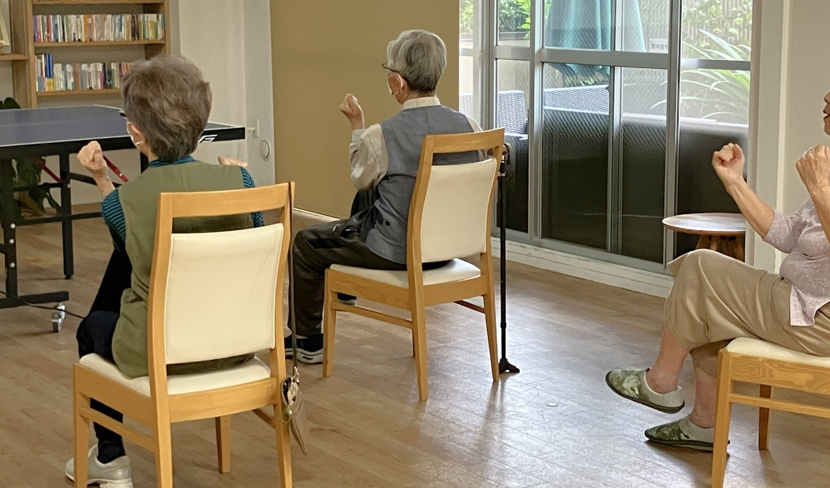 短時間でも、室内でゆるやかに体を動かすことによって全身の血流を促進することができればと思ったのが『座って行う健康体操』の時間を設けたきっかけです。
