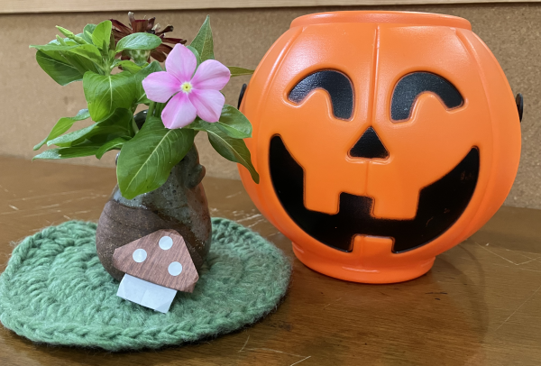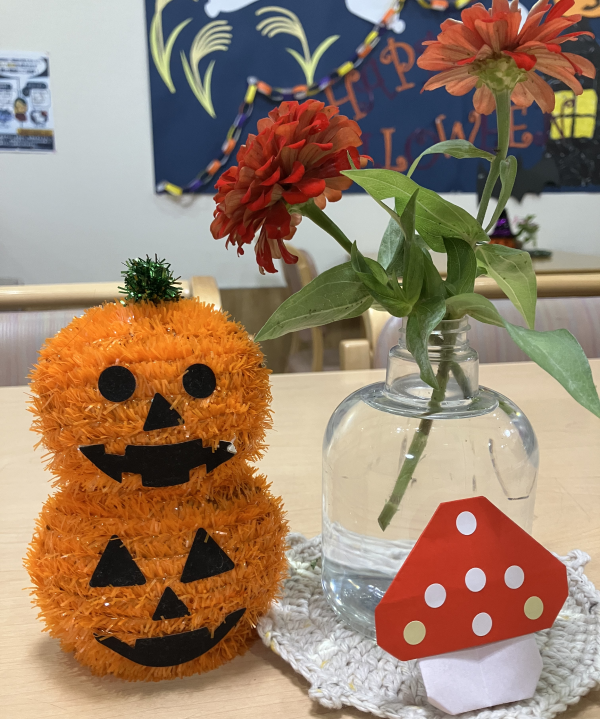 10月をイメージするハロウィンかぼちゃと、秋の花とのコラボレーション!