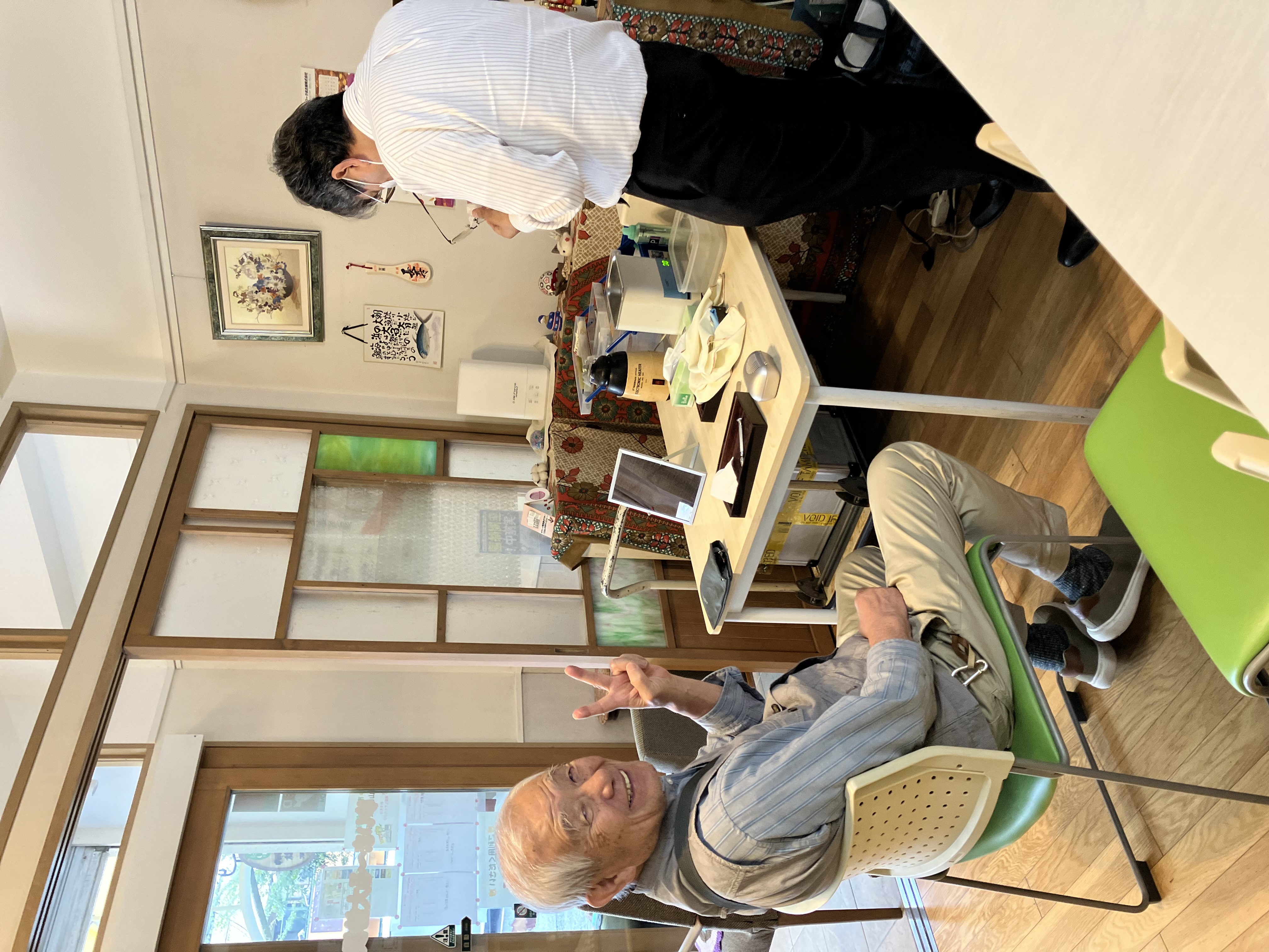 補聴器の調整に見えて、はいポーズ!!
