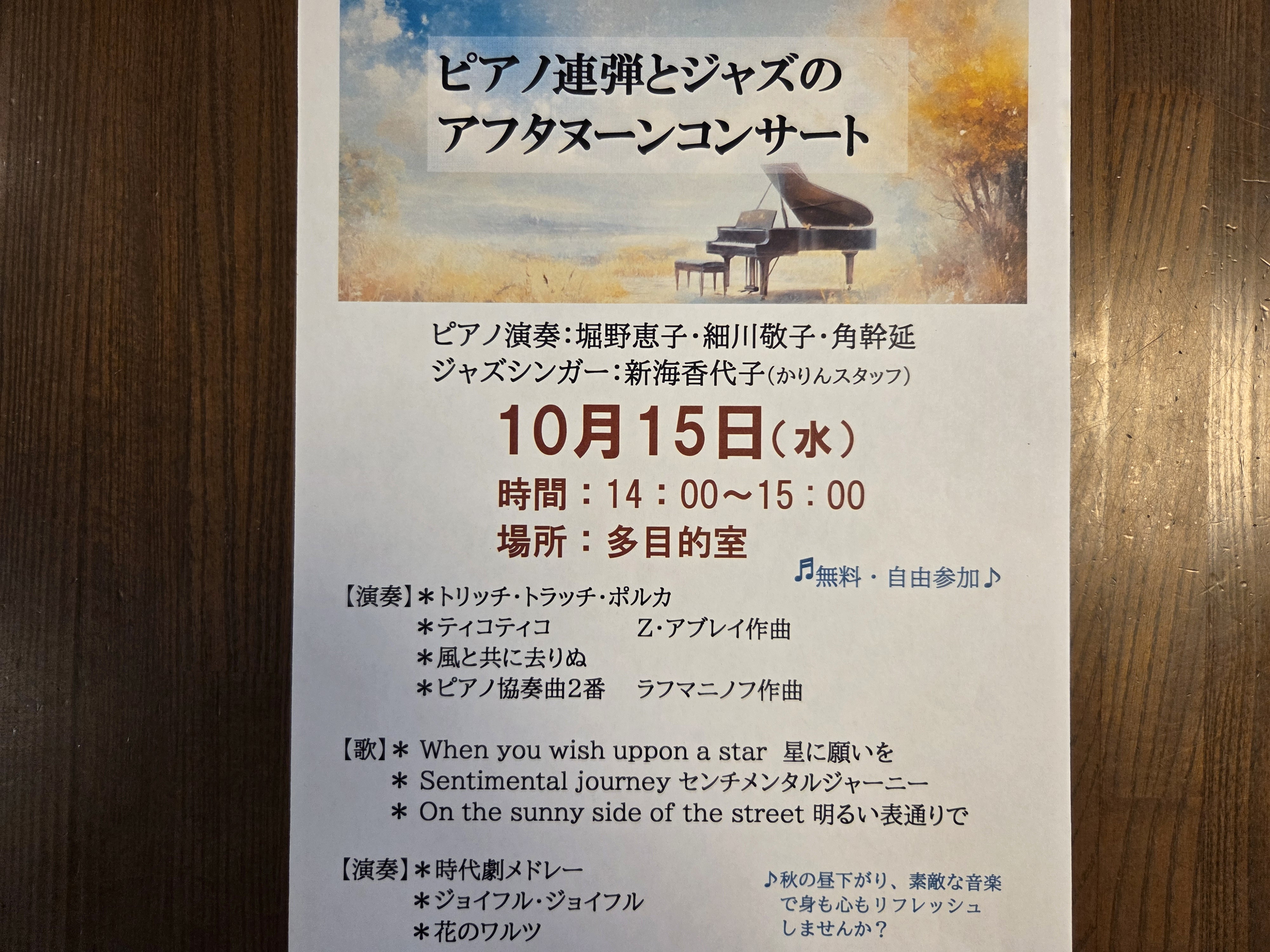 「ピアノ連弾とジャズのアフタヌーンコンサート」がありました。