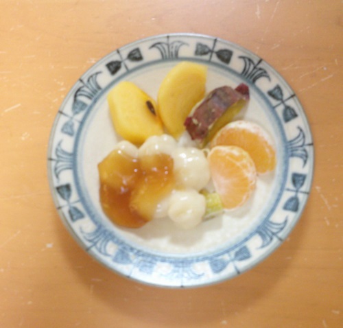 ミカン、柿、焼きいも、みたらし団子ーご利用者皆さんに、安全・安心に食べて頂ける、スタッフ手作りのお団子です。