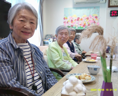 今年のお月見は10月6日。ぐり~んはぁとでも、3時のおやつの時間に「お月見団子を食べる会」を開催し、楽しみました。