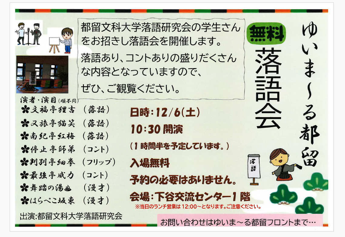 12/6(土)に、都留文科大学落語研究会による、落語会を開催しました。