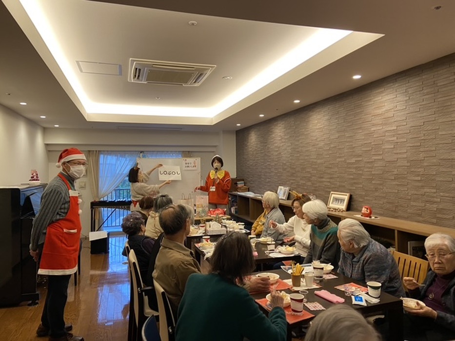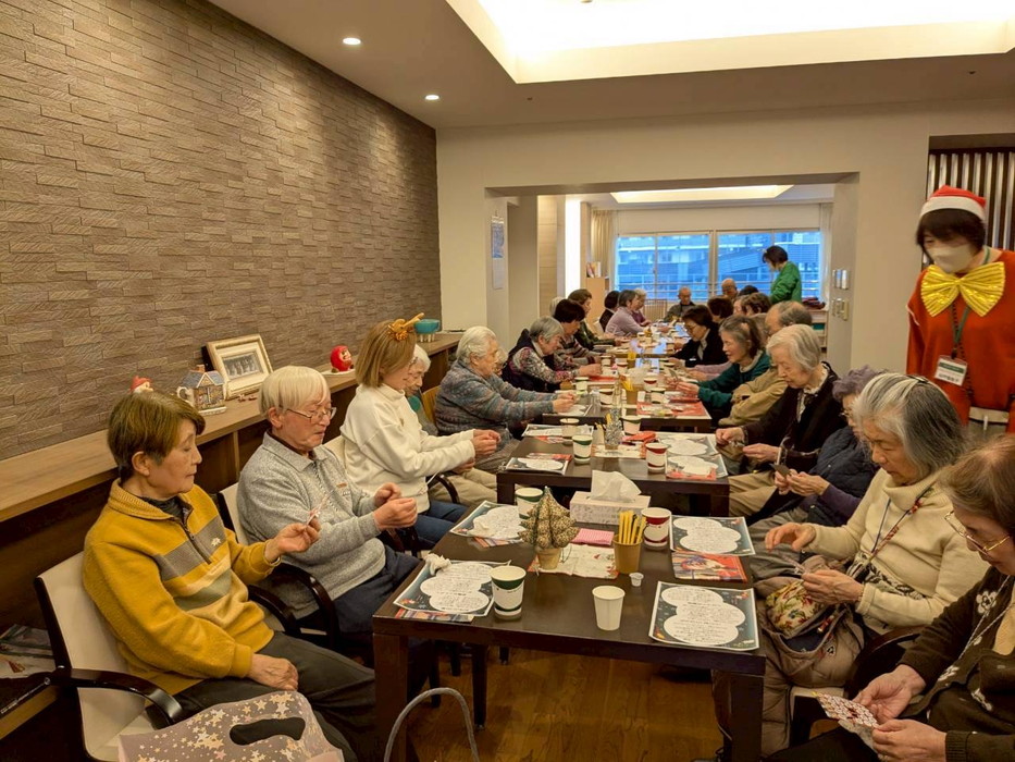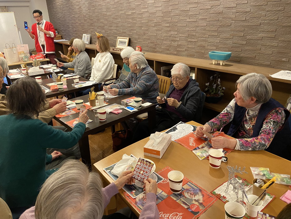 クリスマスケーキ、脳トレゲーム、ビンゴ大会、クリスマスソングの合唱~♪