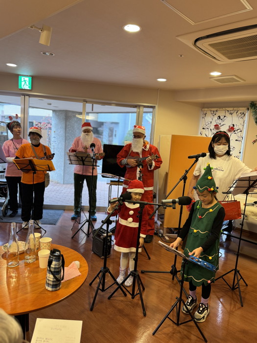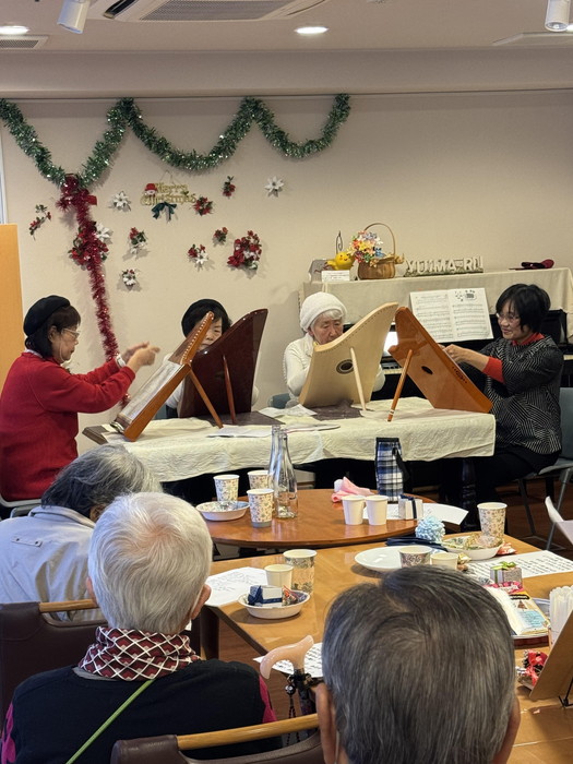 「伊川谷音楽チーム」「ハープ教室」の皆様が来て下さり、サンタの衣装を着た可愛らしい子供達も参加して沢山のクリスマスソングを歌ってくれました。