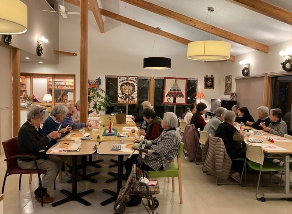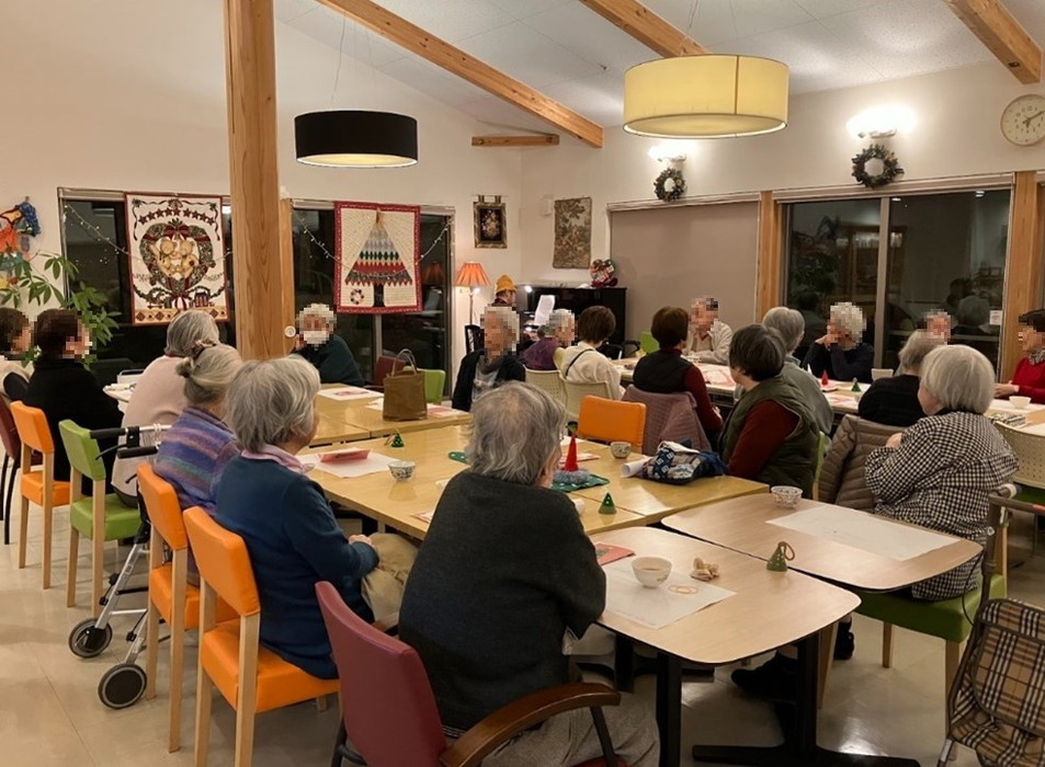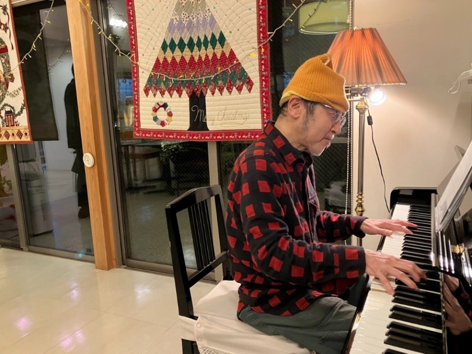 最後は「赤鼻のトナカイ」「きよしこの夜」をピアノの生演奏で皆さん一緒に歌い、厳かな雰囲気とともに居住者さんが輪でつながる雰囲気を醸し出してくれました。中村さん、ありがとうございました。