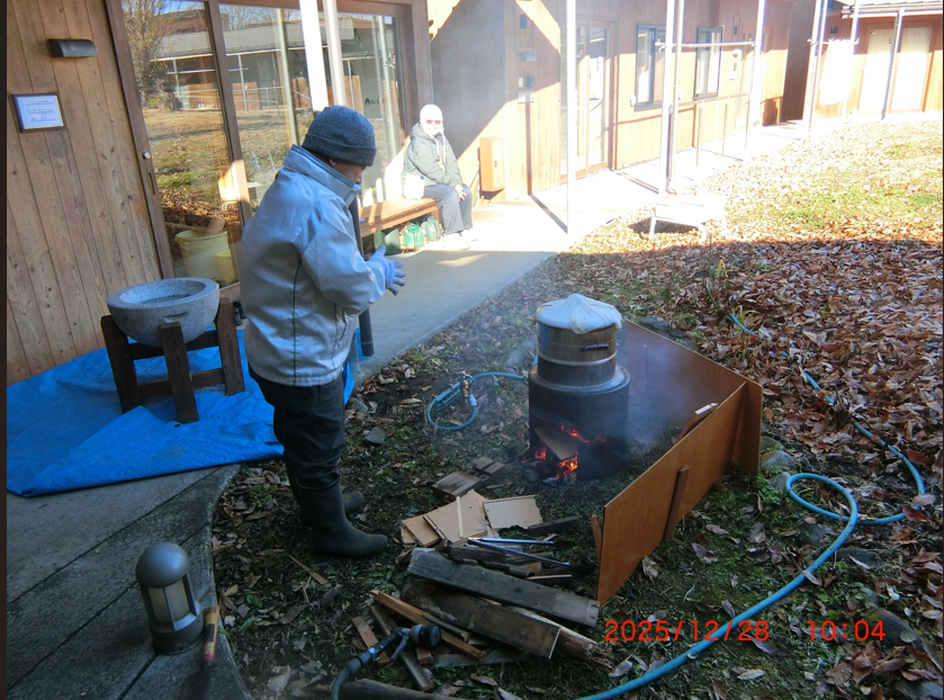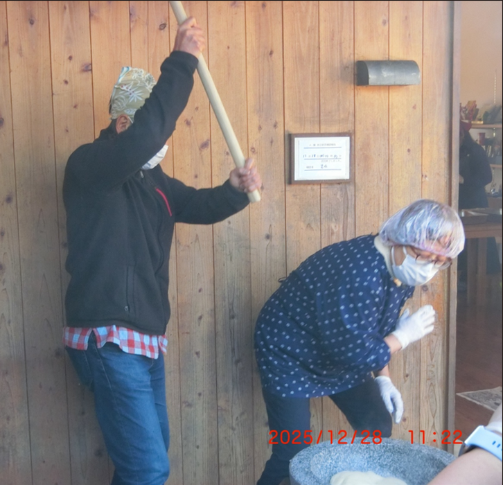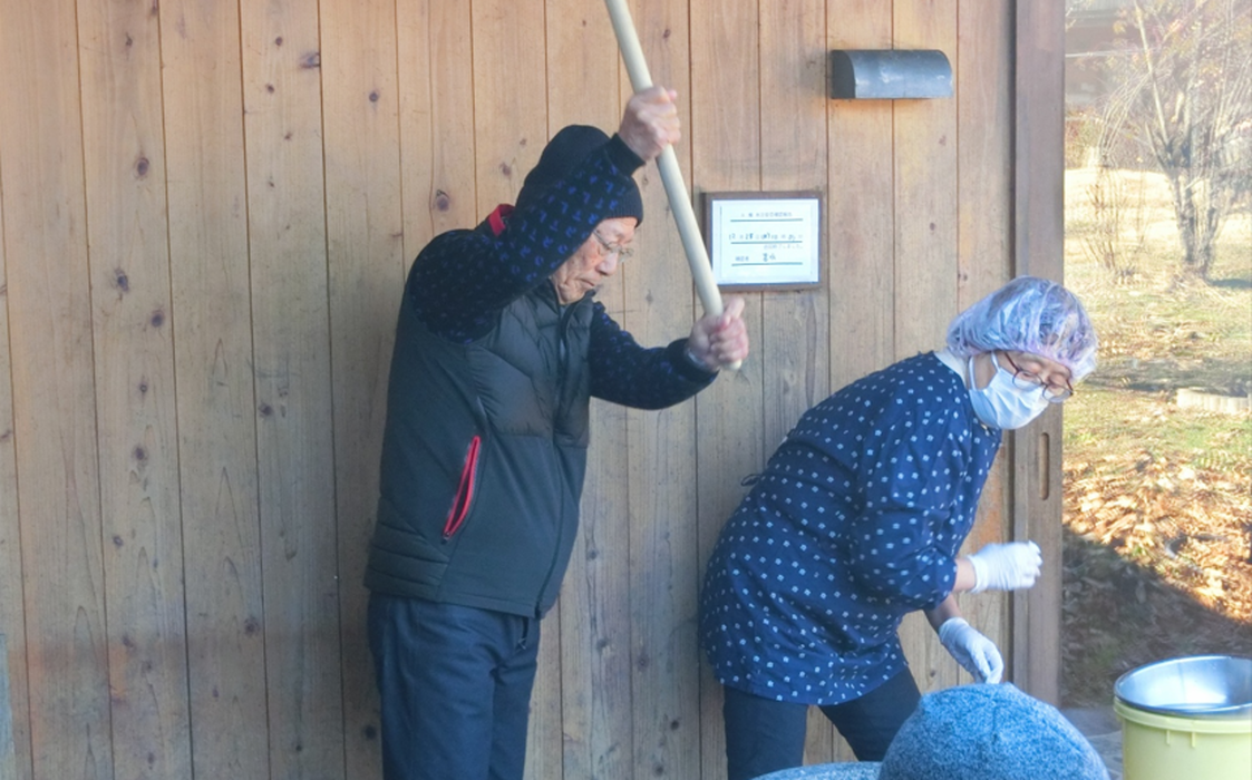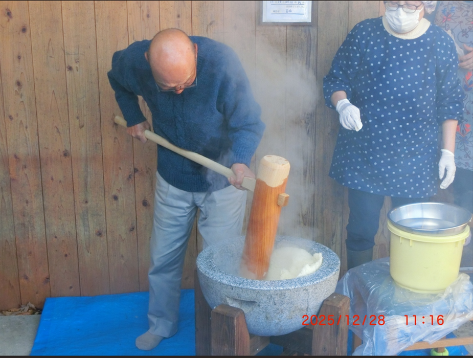 ゆいま~る那須では、居住者の方にお手伝いいただいてもちつきを行います。今年もたくさんの方が集まってくださいました。ありがとうございます。
