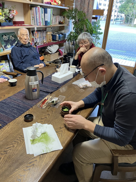 新春お茶会のためにスタッフがお茶をたてる練習もしたとのことです。