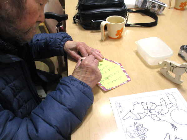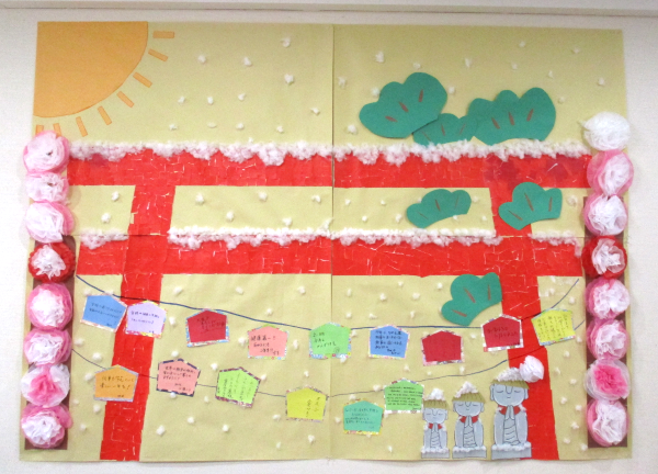 新年になり、皆さんと一緒に絵馬を書きました。