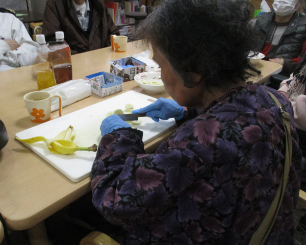 バナナを切ってもらいました。