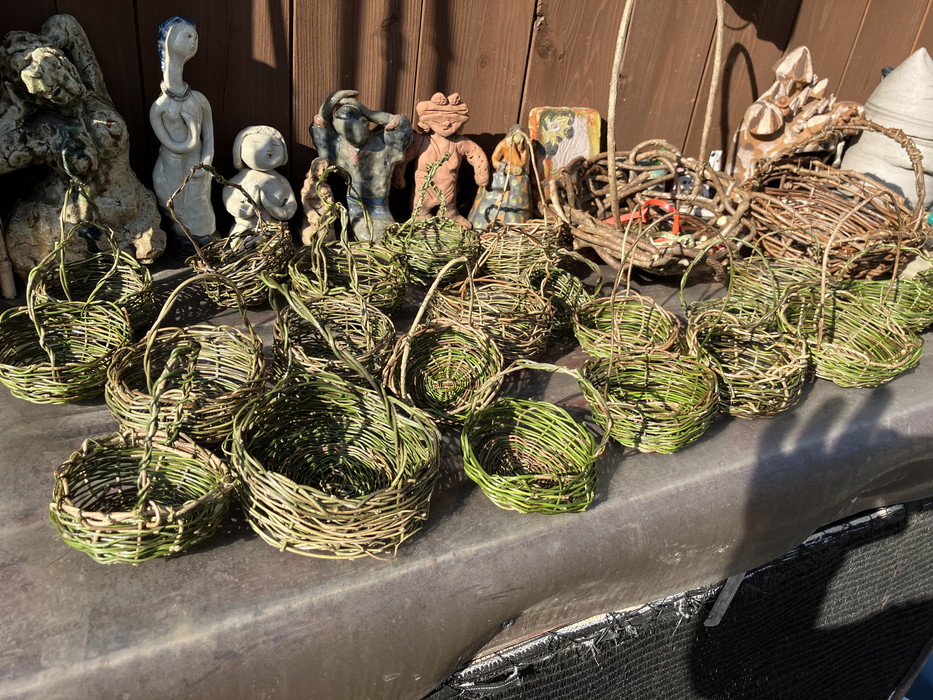 居住者のOさんが作るつる編みの籠がたくさん出来上がっていました。