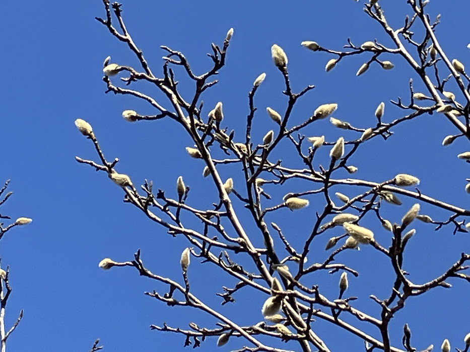 メイン通りのハクモクレンが咲くのはもう少し先になりそうです。