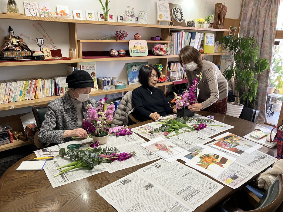 そして、毎月ありますイベントのひとつ。フラワーアレンジメントの様子を