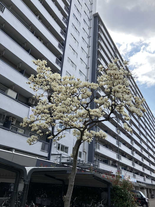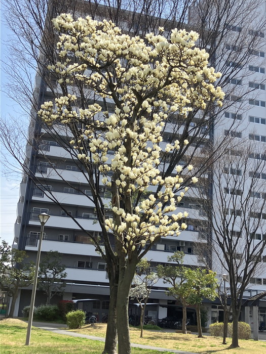 団地前に白木蓮(ハクモクレン)が満開でした。