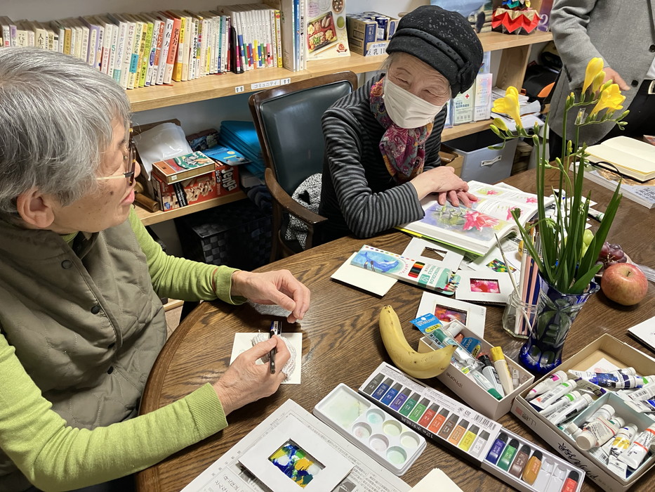 フロントでも毎月催されている「みんなで絵を描く会」
