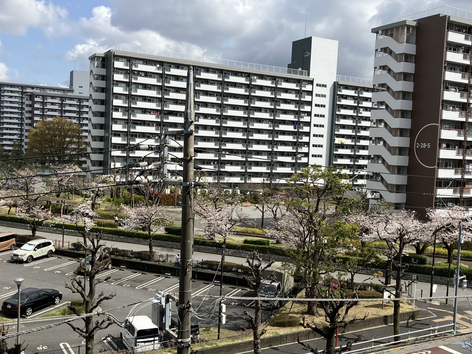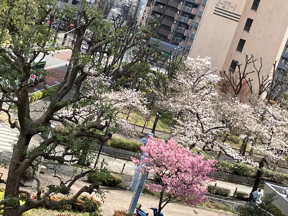 ゆいま~る棟の2階から撮った桜通りです。