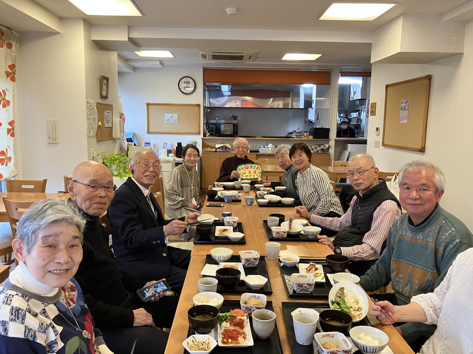 食堂で誕生日パーティーをされていました。