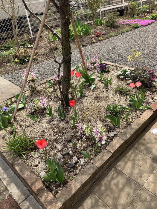 木々や花々は春をしっかり感じているようで、入口花壇の花桃やチューリップも次々と咲き始めています。