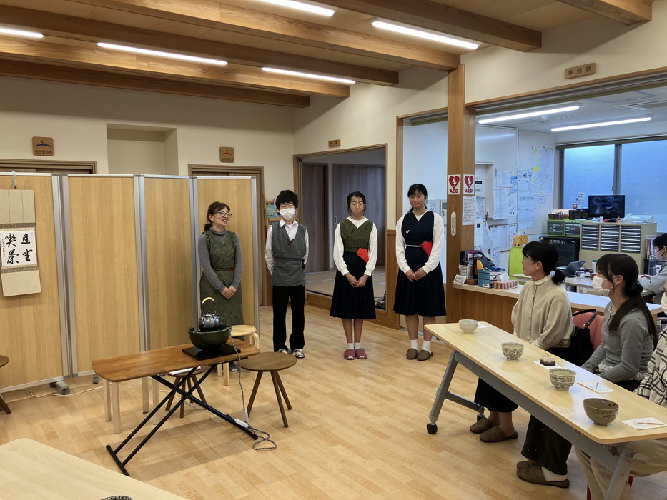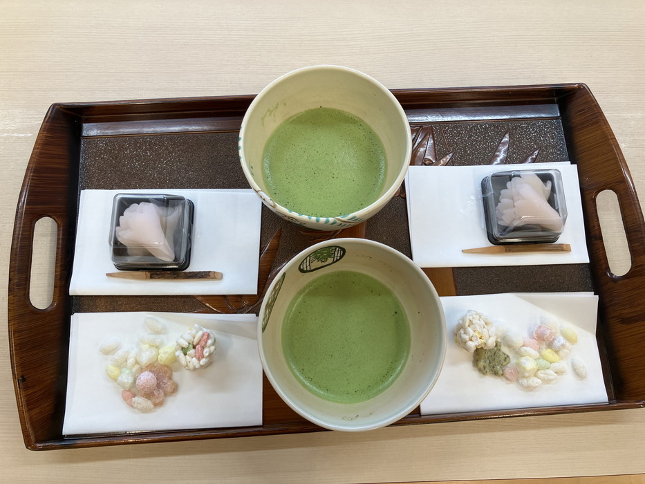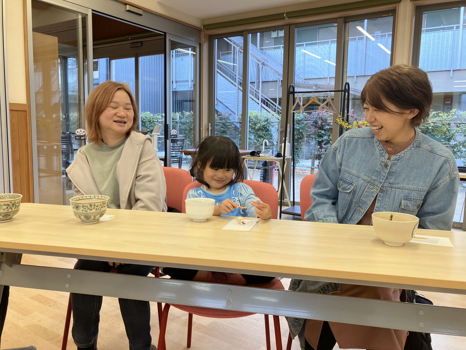 未就学児からゆいま~る花の木の入居者まで、20数名の幅広い世代の参加のなか、一生懸命に3人の中学生が美味しい抹茶を点ててくださいました。