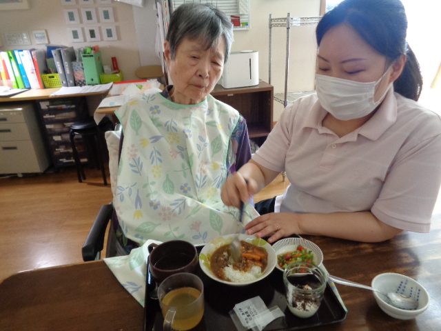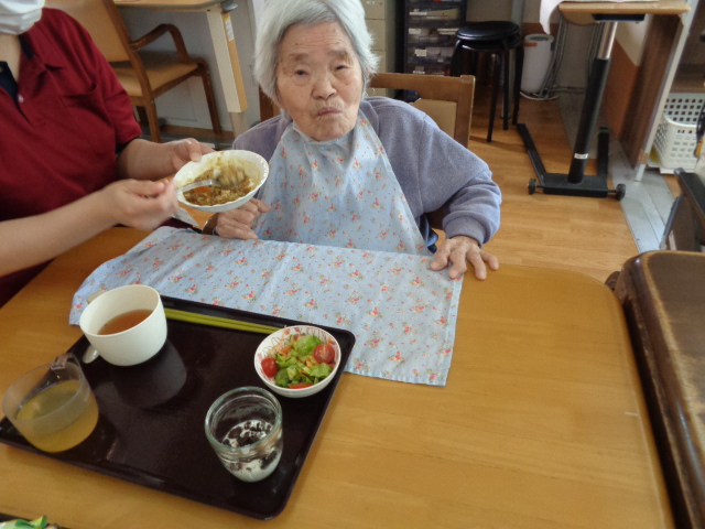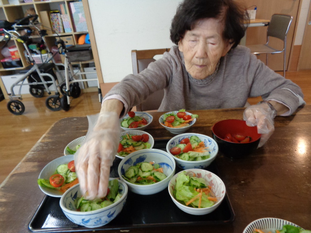 サラダは4月から花菜を利用されていらしゃるUさんが盛り付けをして下さり・・