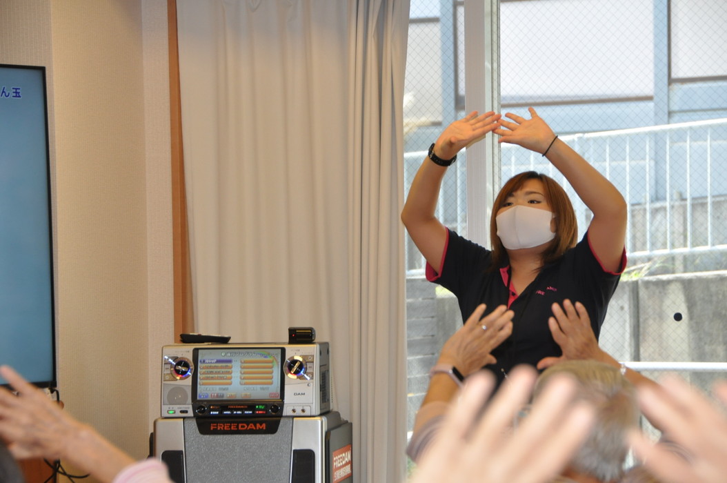 第3弾のプログラムでは、映像に合わせ、坂本九の「上を向いて歩こう」や橋幸夫の「高校三年生」などの唄を歌いながら歩いたり、フリをつけて全身を使います。少し息が上がるくらい。曲に合わせて670歩歩きます。「新しいプログラムは楽しみ」と本当に楽しそうでした。 暑からず寒からず気候も良くなり、皆さん体が良く動くようです。元気に来られ、笑顔で帰られる姿を見るのが嬉しいです。